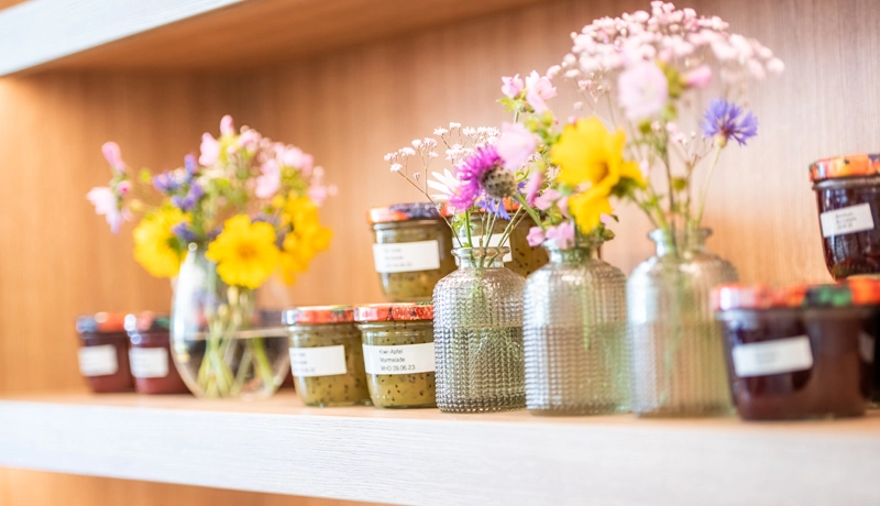 Gute Lebensmittel aus der Region bieten wir unseren Mitarbeiterinnen und Mitarbeitern auch zum Mitnehmen an. Selbstgemachte Marmelade und Pestos aus unserem Betriebsrestaurant, Honig von unseren imkernden Mitarbeiter*innen, Eier eines benachbarten Hühnerhofes, … Kein Hunger ist nur ein Zwischenziel für uns: Wir bieten an vielen Standorten gute Produkte für eine gesunde und abwechslungsreiche Ernährung an!